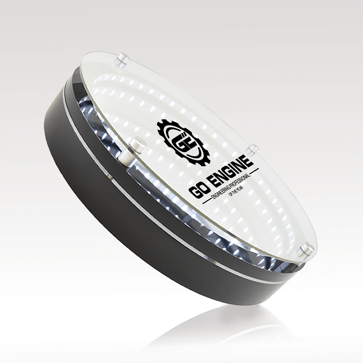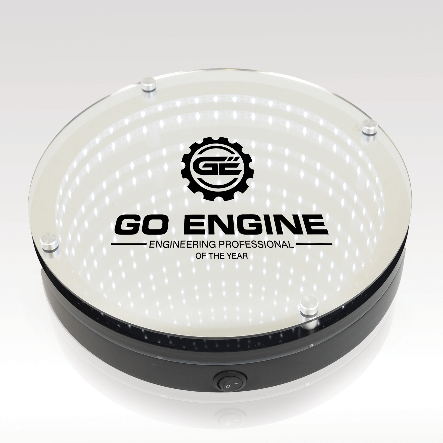 Celebrate achievements in a truly unique way. This captivating award creates a stunning optical illusion of infinite depth, symbolizing limitless possibilities and achievements in a truly unique way. Combining elegance, innovation, and mesmerizing endless illumination, this desk or wall mount design is the perfect way to honor milestones, recognize excellence, or commemorate special occasions.